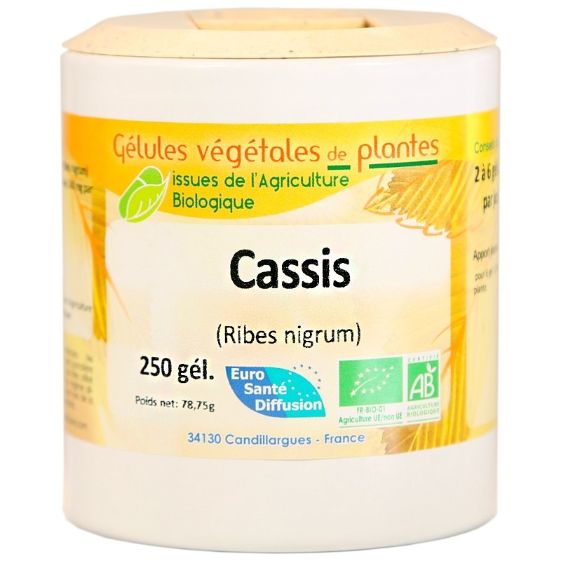 Ingrédients : Cassis* feuille (Ribes nigrum) poudre micronisée 240mg par gélule